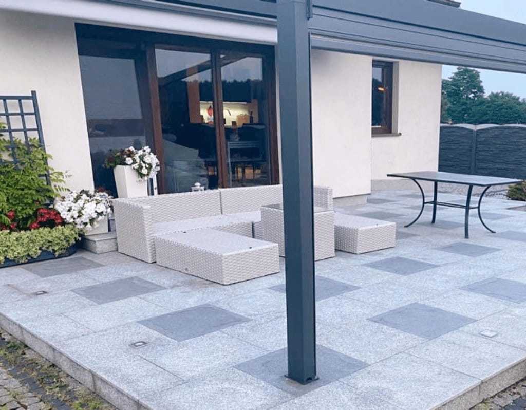 Die Terrassenplatte aus geflammtem Granit in Hellgrau ist ein hochwertiges Produkt, das Ihre Terrasse oder Patio in einen wunderbaren Entspannungsort, einen Ort für Begegnungen mit lieben Menschen und für besondere Momente verwandelt. Die Granitplatte zeichnet sich auch durch ihre praktischen Eigenschaften aus – sie ist den rauen Witterungsbedingungen, denen die Terrasse oft ausgesetzt ist, gut gewachsen. Eine Terrasse aus Granitplatten ist auch leicht sauber zu halten. Dank der geringen Saugfähigkeit von Granit (10-mal geringer als Beton) zeichnen sich die Platten durch eine hohe Fleckenbeständigkeit aus. Zur Reinigung der Terrasse können gefahrlos Hochdruckreiniger eingesetzt werden. Die Platte wird in einer Flammenbehandlung bearbeitet, wodurch eine aufgeraute, grobe und rutschfeste Oberfläche entsteht. In unserem Shop sind Granitplatten in verschiedenen Größen erhältlich. Wählen Sie die richtige Größe und gestalten Sie den perfekten Raum.