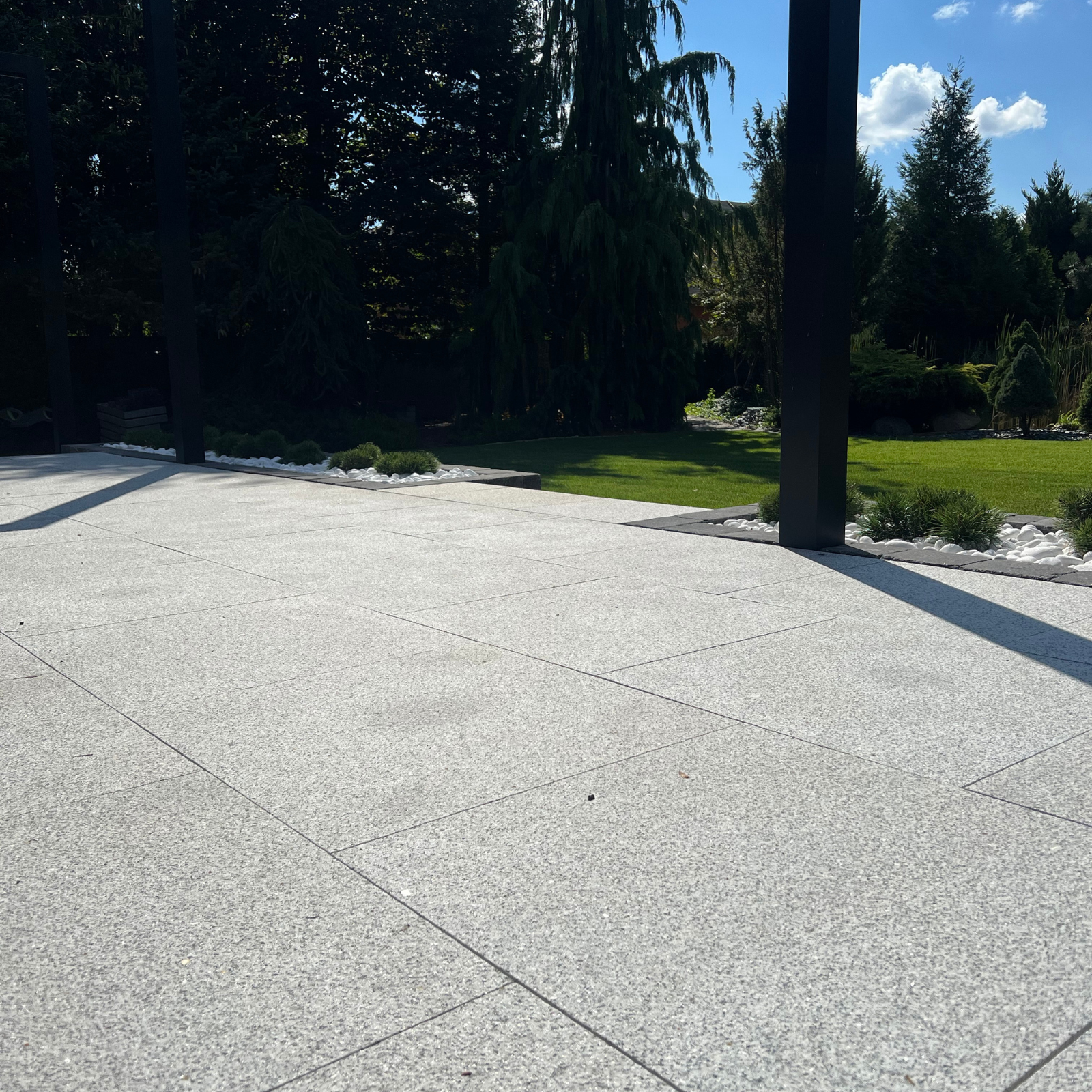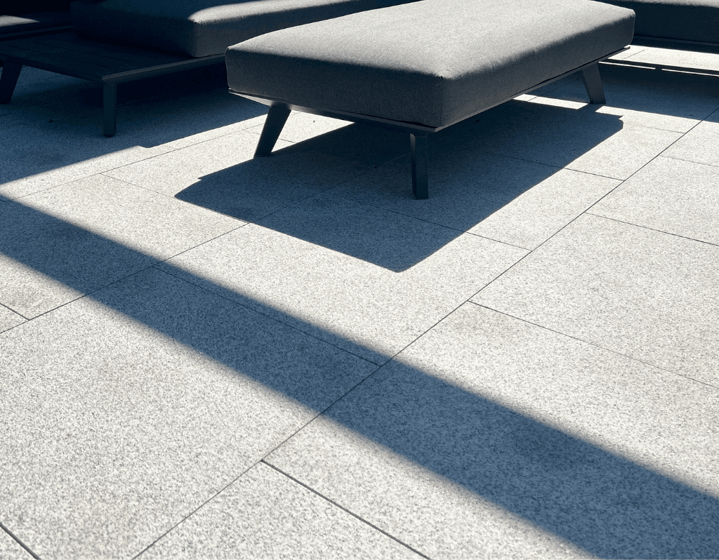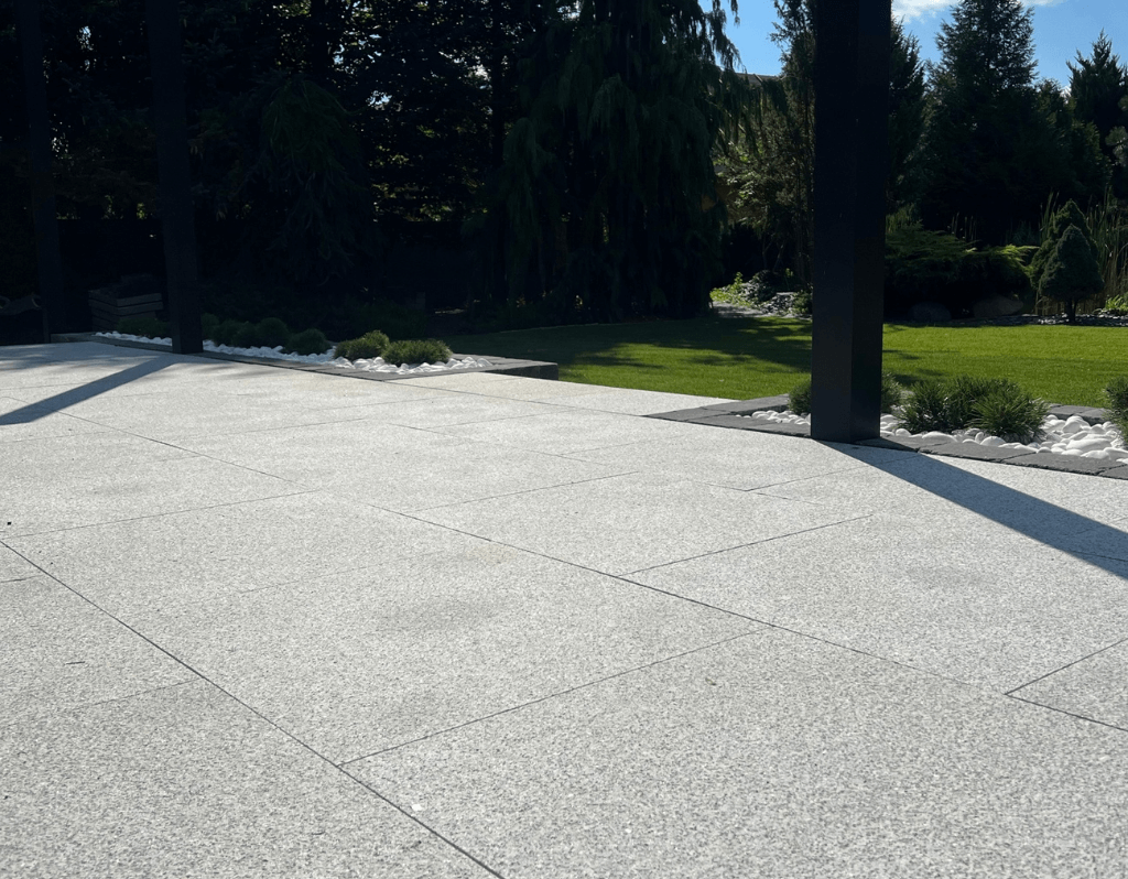 Die Terrassenplatte aus geflammtem Granit in Hellgrau ist ein hochwertiges Produkt, das Ihre Terrasse oder Patio in einen wunderbaren Entspannungsort, einen Ort für Begegnungen mit lieben Menschen und für besondere Momente verwandelt. Die Granitplatte zeichnet sich auch durch ihre praktischen Eigenschaften aus – sie ist den rauen Witterungsbedingungen, denen die Terrasse oft ausgesetzt ist, gut gewachsen. Eine Terrasse aus Granitplatten ist auch leicht sauber zu halten. Dank der geringen Saugfähigkeit von Granit (10-mal geringer als Beton) zeichnen sich die Platten durch eine hohe Fleckenbeständigkeit aus. Zur Reinigung der Terrasse können gefahrlos Hochdruckreiniger eingesetzt werden. Die Platte wird in einer Flammenbehandlung bearbeitet, wodurch eine aufgeraute, grobe und rutschfeste Oberfläche entsteht. In unserem Shop sind Granitplatten in verschiedenen Größen erhältlich. Wählen Sie die richtige Größe und gestalten Sie den perfekten Raum.