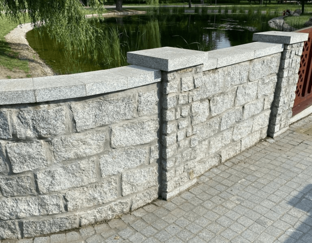 Die gespaltenen Mauersteine STRZEGOM in Hellgrau sind ein Produkt höchster Qualität, welches die Erwartungen der anspruchsvollsten Kunden erfüllt. Der Zierstein wird für Palisaden-Designs, Mauerwerke, Zäune und Rabatten verwendet. Er passt sich perfekt an die Umgebung des Hauses an und harmoniert im Garten hervorragend mit den Pflanzen. Die Granit-Mauersteine sind beständig gegen UV-Strahlen, frostbeständig, hart und resistent gegen mechanische Beschädigungen, sodass Sie sich um ihre Haltbarkeit keine Sorgen machen müssen. Der gespaltene Stein zeichnet sich durch seine unregelmäßige Form aus, dank derer wir einzigartige Designs schaffen können.
