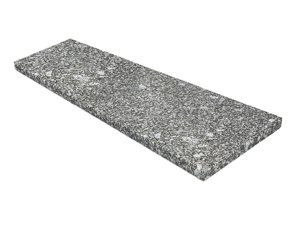 Außentreppen – am Hauseingang, Treppen im Garten oder auf der Terrasse. Mit der Verkleidungstrittstufe können Sie einen Vorsprung erzielen, d. h. die Verschiebung der oberen Platte der Stufe über der Setzstufe. Treppen aus Granit-Trittstufen wirken außergewöhnlich elegant und edel. Dank der natürlichen Eigenschaften von Granit können wir uns seiner Haltbarkeit und Widerstandsfähigkeit gegenüber Sonne, Frost und Regen sicher sein. Die Oberseite der Stufe ist mit einem geflammten Finish versehen, der für eine poröse, raue und rutschfeste Oberfläche sorgt. Der Finish der Beflammung kann auch an den Vorder- und Seitenflächen durchgeführt werden – zusätzliche Option. Alle Stufen haben eine schöne 2-mm-Anfasung. In unserem Shop finden Sie Stufen in verschiedenen Längen und Breiten. Wählen Sie die passende Größe und verwirklichen Sie Ihr Traumprojekt.