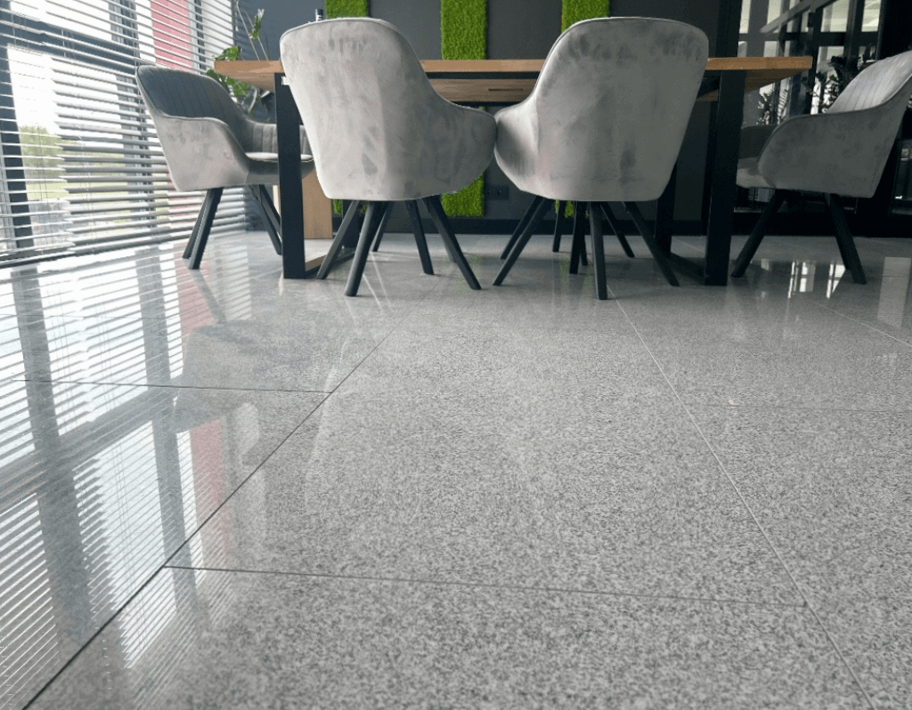 Die polierten Granitfliesen G703 in Hellgrau sehen in jedem Interieur außergewöhnlich elegant aus. Die Fliesen sehen sowohl im Wohnzimmer, Der Poliervorgang unterstreicht die natürliche Schönheit und Körnung von Granit. Dank der geringen Saugfähigkeit von Granit (10-mal geringer als Beton) zeichnen sich die Platten durch eine hohe Fleckenbeständigkeit aus.